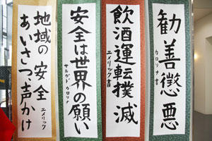 2017年3月2日(木)、本学別科生のリノワ エメリック フランソワさん(フランス)、サルガド カブレラ カロリナ イサベルさん(チリ)が、書道を通じて地域住民の防犯意識の向上に貢献したとして、小泉勝浦警察署長から感謝状が贈呈されました。