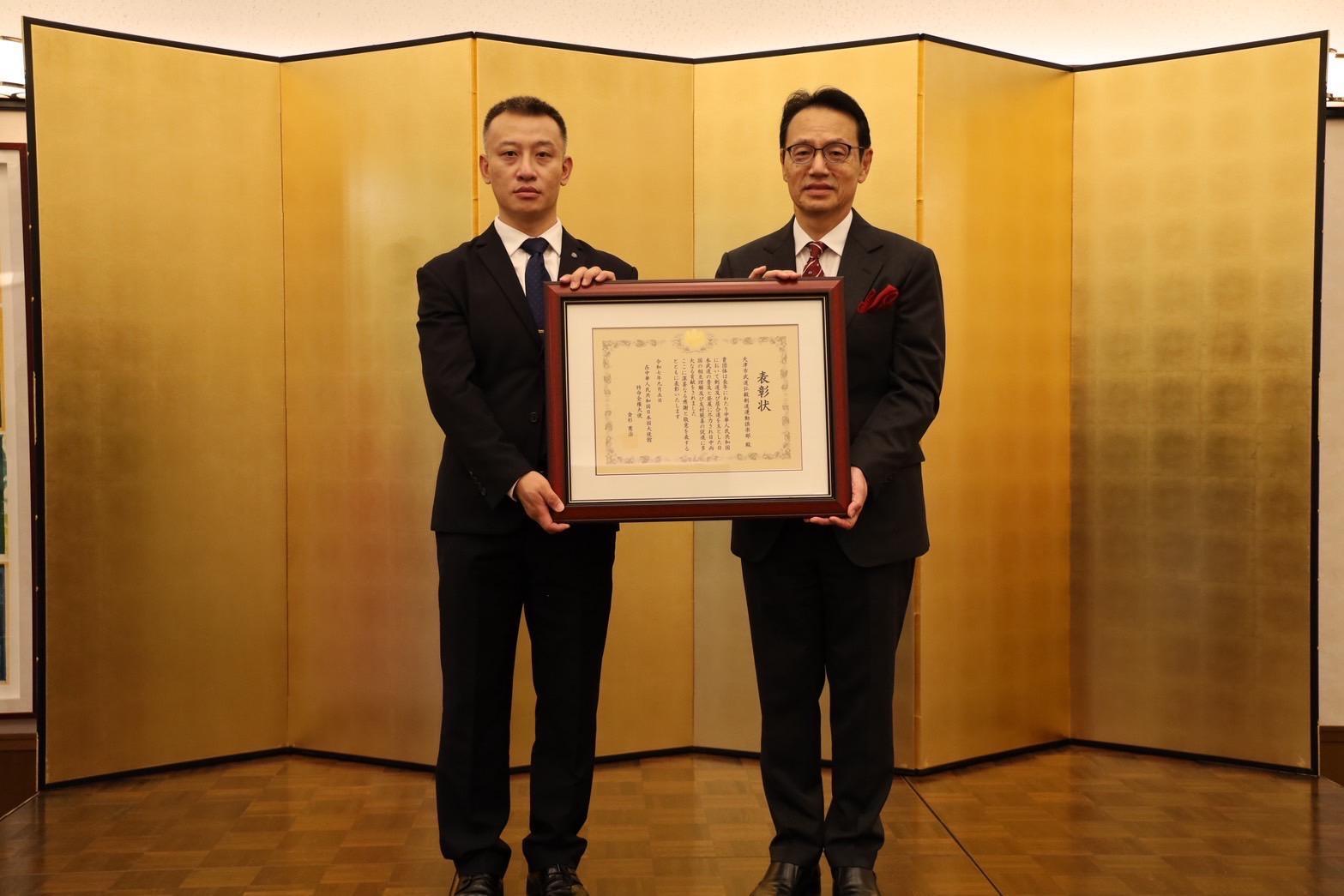 本学別科修了生の戦琪文(セン・キブン)氏が運営する天津市武道弘毅剣道運動倶楽部が在外公館長表彰(大使表彰)を授与されました。