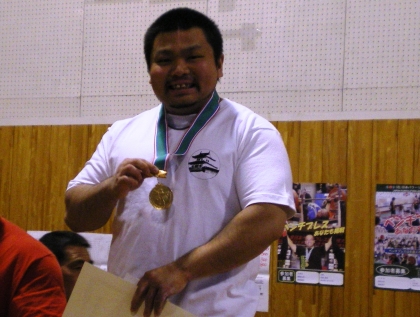 ノーギア競技の日本最高峰の大会であるジャパンオープンパワーリフティング選手権大会において、昨年75kg級4位入賞でデビュー戦を飾った武田選手は、今年は階級を100kg級に上げて出場した。大会約2週間前に股関節内転筋を痛めて調整に不安を残しており、1種目目のスクワットでは大事をとって3本目をパスしたものの、100kg級スクワットの現日本記録保持者長野斎史選手(十勝帯広パワーリフティング協会)と15kg差の2位につけた。2種目目のベンチプレスでは出場選手中の最高重量を挙上し、サブトータルで2位陣内秀聡選手(フジモトジム)に10kgの差をつけて首位に立った。最終種目のデッドリフトではさらにその差を25kgに広げて、見事にジャパンオープン初優勝を飾った。一般的には30〜40歳代でピークを迎えるパワーリフティング競技において、弱冠22歳での優勝は特筆すべき活躍である。